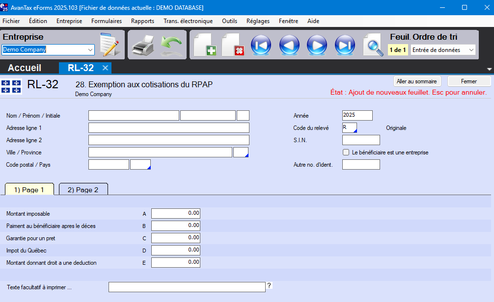 Voici comment le logiciel AvanTax eForms peut vous aider à préparer votre déclaration Relevé 32 :
