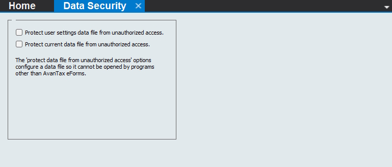 Protect current data file from unauthorized access - Configure the current data file so that it CANNOT be opened by any program other than AvanTax eForms