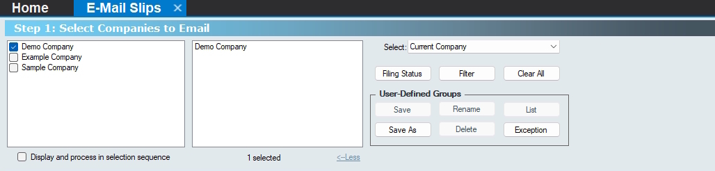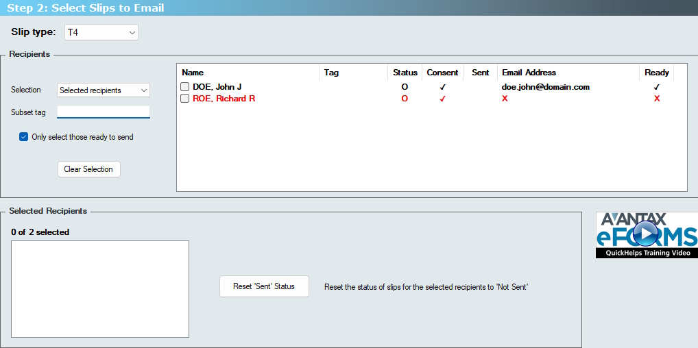 Selection - Select the slips to be emailed from the drop-down list; the available options are: