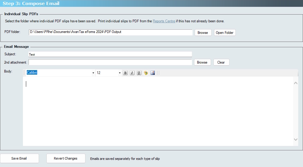 Subject - Enter the subject of the email, for example: “Here is your 2026 tax slip” 2nd Attatchment - You can add a second attachment to the email, in addition to the tax slip itself, such as a cover letter or any other document you may wish to include with the email; this attachment will be attached to ALL emails
