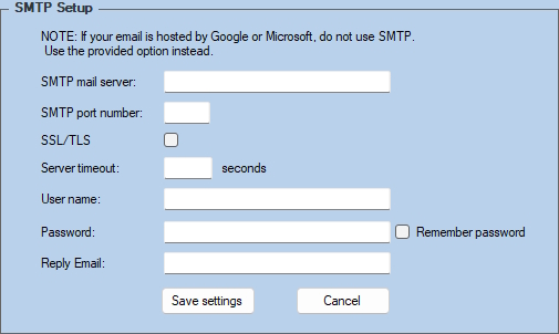 Password - Enter the password required by your SMTP server, this may not necessarily be your own email password
