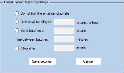 Do not limit the email sending rate - Emails will be sent with no limitations, depending on the policies in place at your Internet provider; this may result in your email being flagged as spam