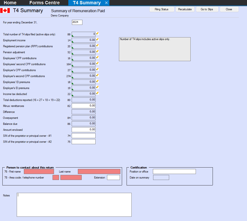 T4 Summary Data Entry Screen