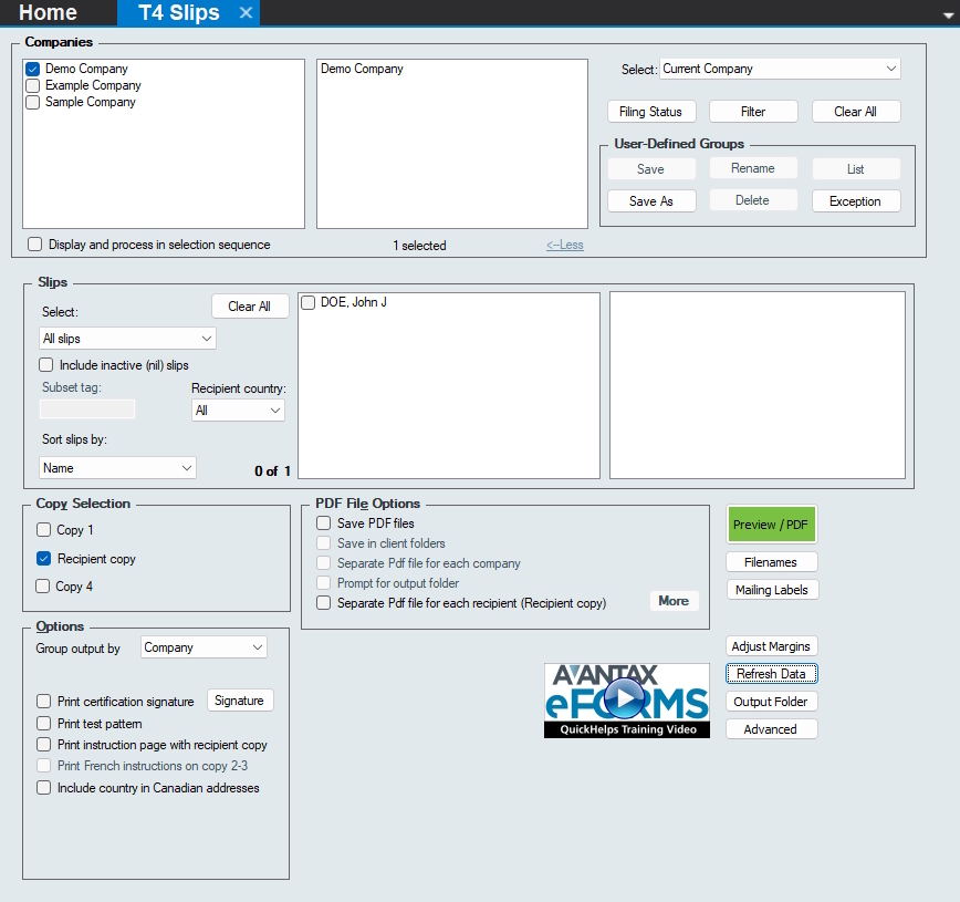 Copy 1 - If you’re preparing a return with fewer than 5 slips, use this option to print the slips for submission to CRA and Revenu Québec