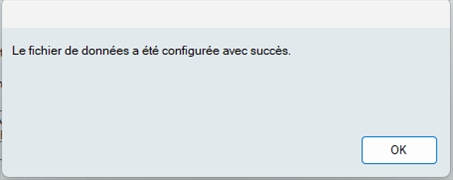 Configuration du fichier de données terminée