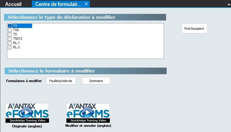 - eForms Lite - Saisir jusqu’à 25 feuillets T4, T4A, T5, relevé 1 et relevé 3 pour un maximum de 5 entreprises