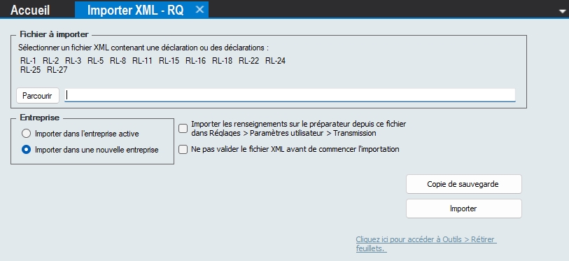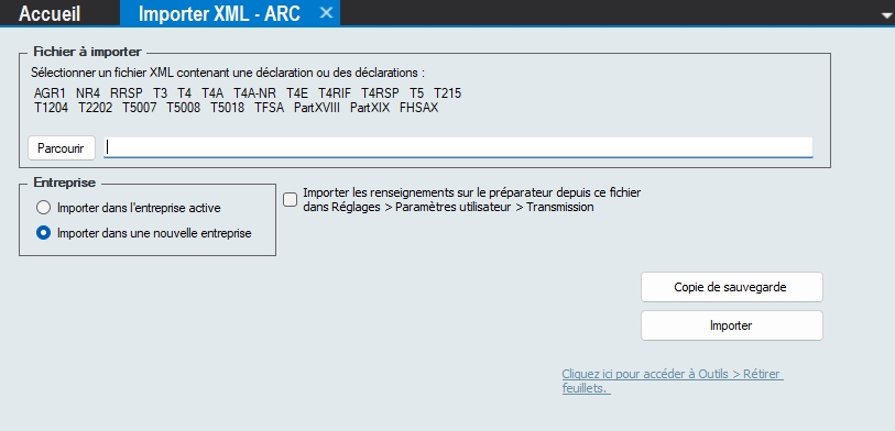 Importer des données à partir d’un fichier XML de l’ARC ou de Revenu Québec