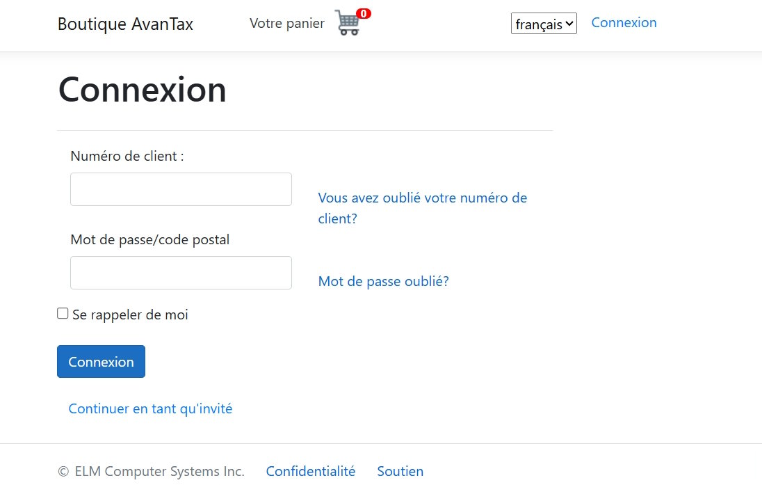 Boutique en ligne AvanTax - Ouverture de session