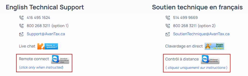 Session de contrôle à distance AvanTax eForms