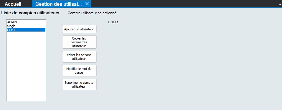 À partir du menu, utiliser : Réglages > Gestion des utilisateurs