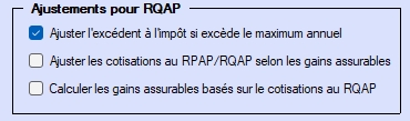 Si cette option est sélectionnée, les ajustements du RPC/RRQ seront calculés comme suit :