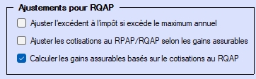 Si cette option est sélectionnée, les cotisations au RPAP seront calculées comme suit :