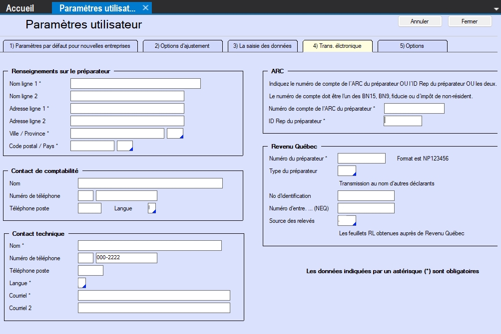 REMARQUE: les éléments marqués d’un astérisque sont obligatoires.